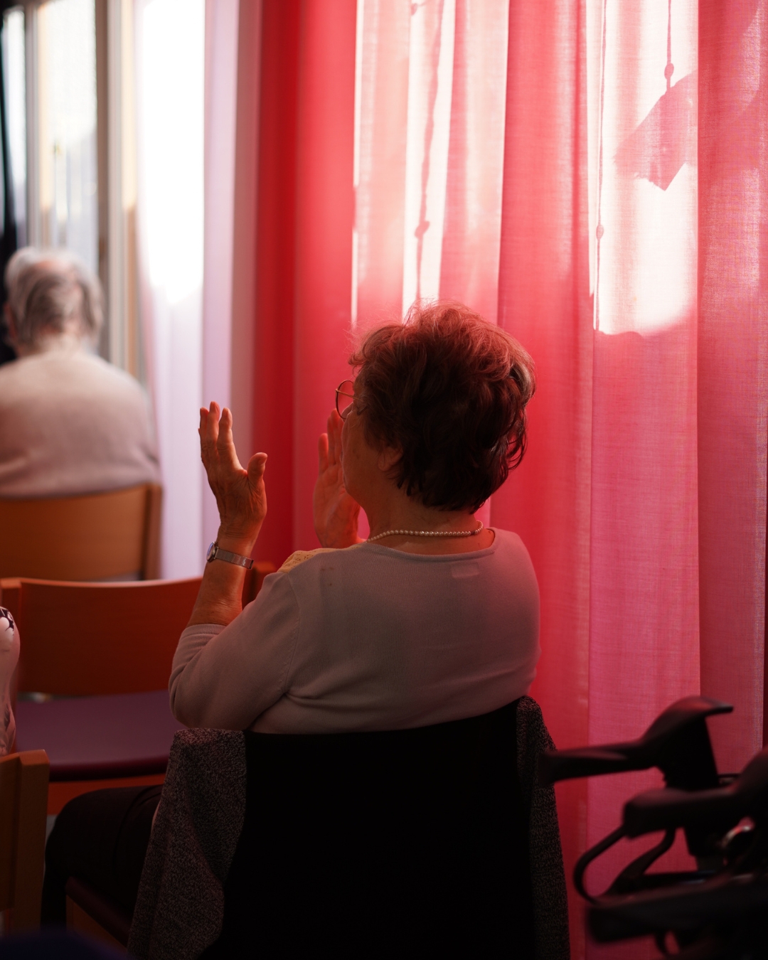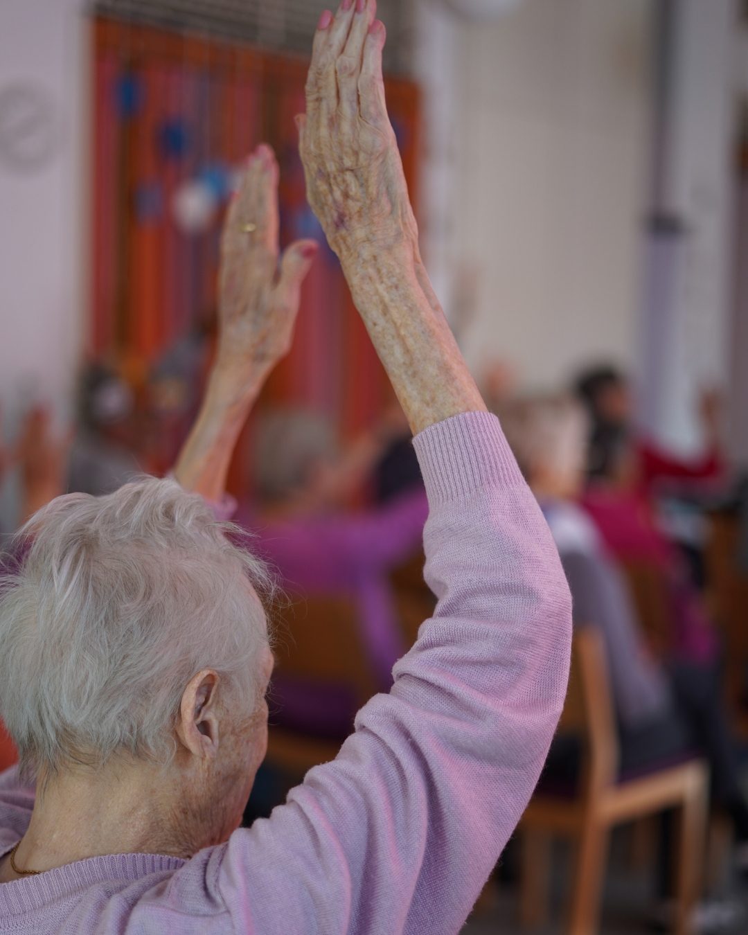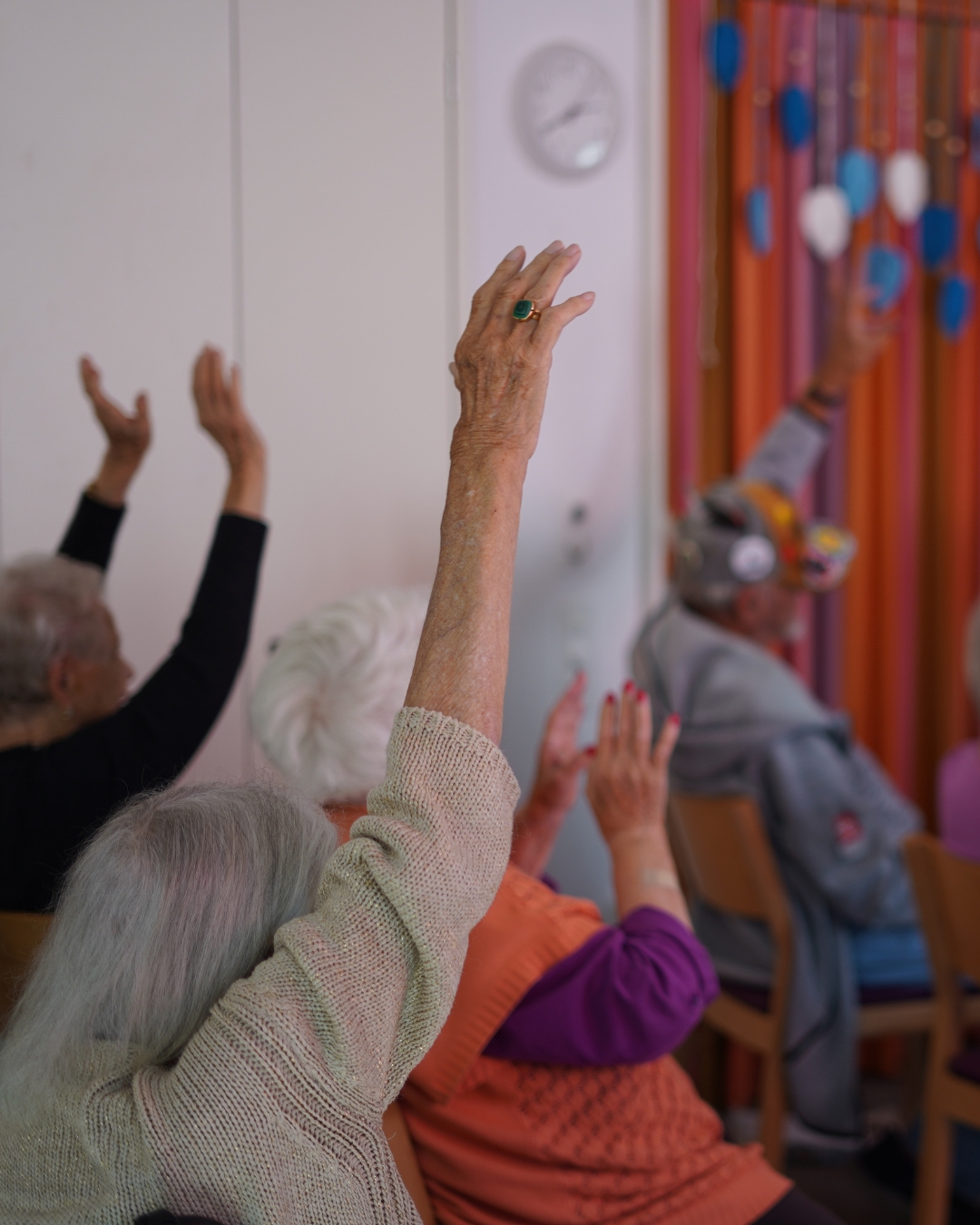 "Entspannt in den Abend": Dieses Angebot gibt es im Schindlergut seit einigen Wochen. Die Bewohnerinnen und Bewohner genießen den Moment der Ruhe und des Loslassens sichtlich.